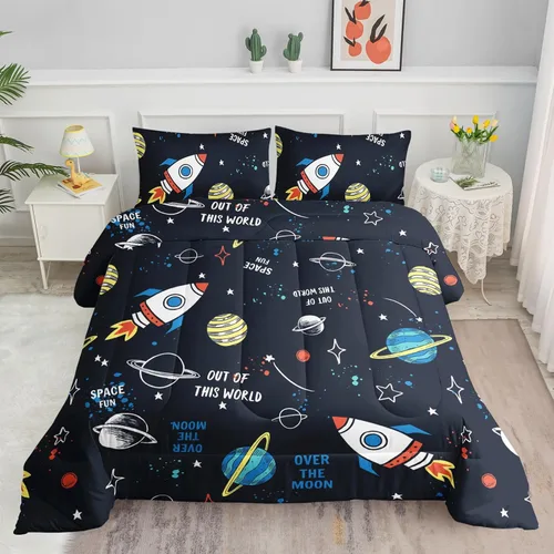 Pregunta sugerida sobre Datura home Juego de edredón con estampado de galaxia, astronauta y cohete espacial con 1 edredón y 2 fundas de almohada para dormitorio de niños ¿Este producto sí me sirve para lo que necesito?