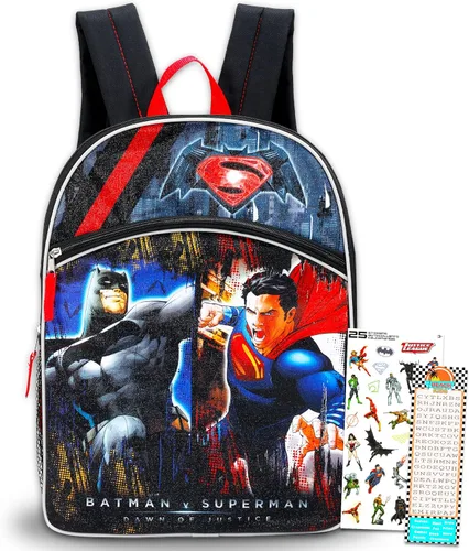 DC Comics Mochila Superman para niños, mochila escolar de lujo de 16 pulgadas con marcador y calcomanías (suministros escolares de Superman),