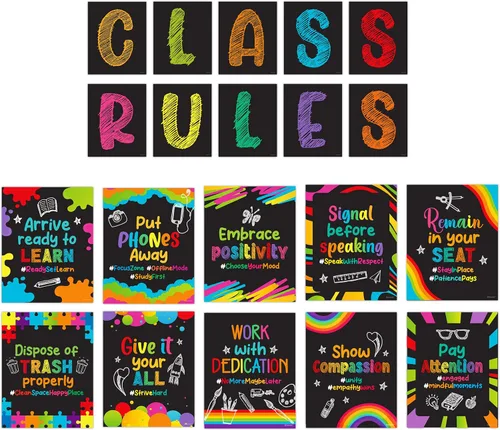 Establece expectativas: 20 carteles, incluyendo 10 cartas de reglas de aula de pizarra y 10 carteles de reglas de sala de clase, para recordar a los niños el comportamiento y actitudes que se esperan de ellos. Los carteles de aula de la escuela secundaria ayudan a reforzar las reglas. Fomenta la responsabilidad: este póster de expectativas en el aula resalta la importancia de ser responsable y responsable de las acciones de uno. El objetivo de estas reglas del aula de la escuela secundaria es fomentar una atmósfera de respeto mutuo. Pósters resistentes: fabricados con acabado laminado mate, este juego de carteles para la escuela intermedia del aula no es deslumbrante cuando se muestra junto a ventanas soleadas o bajo luces brillantes del aula. Póster duradero de reglas de aula elemental que puede durar muchos años. Gran decoración de aula: estas reglas para la escuela secundaria no solo son efectivas para establecer expectativas, sino que también sirven como excelente decoración para el aula. Muéstralo como póster de reglas de clase para el juego de tablones de anuncios de la escuela secundaria. Solo queremos hacerte sonreír: tu felicidad es nuestra prioridad inquebrantable. Si alguna vez te encuentras menos que encantado con las expectativas de tu aula en la escuela secundaria, simplemente ponte en contacto y se hará bien. Compra con confianza y no te pierdas esta decoración de aula