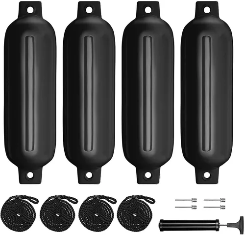 [MATERIAL DURADERO] Las defensas de barco acanaladas para parachoques de atraque están fabricadas con PVC de alta calidad resistente a los rayos UV. La defensa inflable marina acanalada viene con acanalado en todos los lados para una protección adicional. [CARACTERÍSTICAS] Las defensas inflables acanaladas para embarcaciones paquete de 4 cuentan con un gran efecto amortiguador, las defensas de embarcación de doble ojal ayudan a proteger las embarcaciones y el muelle de daños causados por la fuerte colisión entre superficies duras. Diseño científico] Guardabarros marinos inflables con nervaduras y ojales integrados en el cuerpo, el paquete de 4 parachoques de barco se puede colgar vertical u horizontalmente, ayuda a que los parachoques de barco se fijen firmemente al barco. Lo que obtienes: paquete de 4 guardabarros acanalados para lancha de 4.5 x 16 pulgadas, 4 agujas de inflado, 4 cuerdas de guardabarros (6.5 pies de longitud) y 1 bomba de mano, disponibles: blanco/negro/azul parachoques de barco para acoplamiento, paquete de 4 unidades de color negro 【MULTIUSOS】Este parachoques de defensa para barco es perfecto para muelles, yates, veleros, botes de remos, barcos de esquí, canoas, pontones, barcos de pesca, boyas, etc.