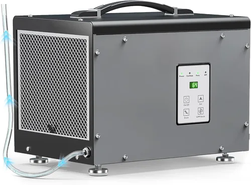 Sistema inteligente de control de humedad: Este deshumidificador para sótanos residenciales está equipado con un sensor de humedad incorporado y un panel de control digital, que mantiene con precisión el rango de humedad preestablecido a través de la tecnología inteligente de arranque/parada del sensor para el control de humedad más sencillo que jamás haya existido. Deshumidificadores de diseño de tamaño compacto: nuestros deshumidificadores comerciales son la solución perfecta para el hogar, espacios de acceso restringido y sótanos. Mide solo 15.35 x 11.2 x 11.4 pulgadas (largo x ancho x alto), este deshumidificador para el hogar es perfecto para caber en espacios de rastreo de poca distancia y sótanos estrechos. Opciones de instalación flexibles: Este deshumidificador ha sido diseñado cuidadosamente para colocarse sobre una superficie plana o puede adquirirse con un colgador adicional para suspenderlo en un poste del espacio de arrastre o en un ático, y viene con pies ajustables y asas resistentes para facilitar su transporte. Estas características garantizan una fácil instalación y operación, por lo que es ideal para una variedad de escenarios y entornos de instalación. Descongelación automática: Nuestro avanzado sistema de descongelación automática monitorea continuamente la temperatura ambiente utilizando sensores incorporados. Cuando se detecta que la temperatura es baja, la unidad inicia un ciclo de descongelación automático para evitar la acumulación de heladas y problemas relacionados. Durante este proceso, el compresor se detiene temporalmente mientras el ventilador continúa funcionando, permitiendo que la escarcha se descongele. Una vez que se completa el ciclo de descongelación, el deshumidificador reanuda el funcionamiento normal. Esta característica conserva la energía y ayuda a prolongar la vida útil de la unidad. Soporte de calidad: Los deshumidificadores de espacios angostos BaseAire vienen con una garantía limitada de 5 años y acceso de por vida al soporte técnico experto. Nuestro equipo de profesionales abordará rápidamente cualquier pregunta que pueda tener, garantizará su completa satisfacción y brindará una solución oportuna para satisfacer todas sus necesidades.
