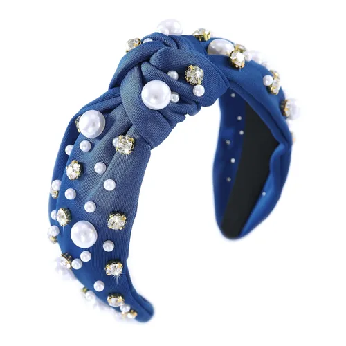 Diadema anudada de perlas para mujer, diadema con brillantes diamantes de imitación, adornada con cristales, diadema ancha con nudo, accesorio para