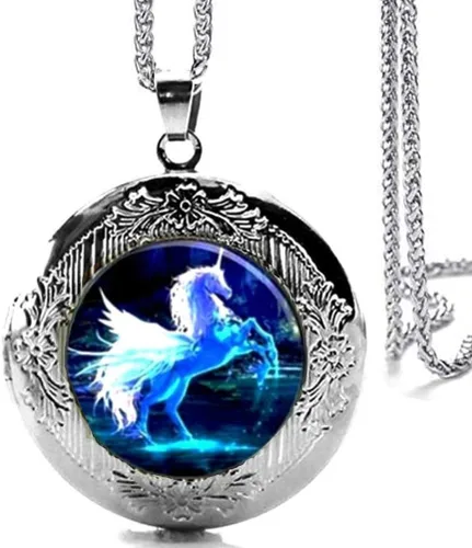 Pregunta sugerida sobre DianaL Boutique Collar colgante de caballo unicornio de tono plateado Collar Cabujón de cristal Imagen artística ¿Este producto sí me sirve para lo que necesito?