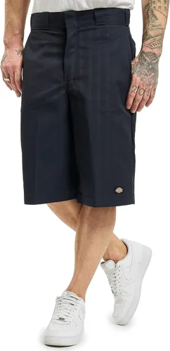 Los pantalones cortos de trabajo con bolsillo multiuso de 13 pulgadas Dickies cuentan con una hechura de pantalón de trabajo 874. Ajuste holgado, parte frontal plana. Bolsillo lateral multiuso. Pliegue permanente. Acabado antimanchas Scotchgard. Etiqueta de logotipo en la pierna delantera izquierda y bolsillo lateral multiuso. Entrepierna de 13.0 pulgadas. Cuenta con un robusto cierre de gancho y barra de metal que asegura la cintura y una parte delantera plana con pliegue permanente.