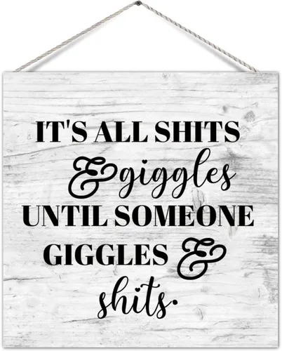 Pregunta sugerida sobre Divertido letrero de paleta de baño con texto en inglés "It's All Shits Giggles Until Someone Giggles Shits Shits Old Fashioned Wood Wall Hanging ¿Este producto sí me sirve para lo que necesito?