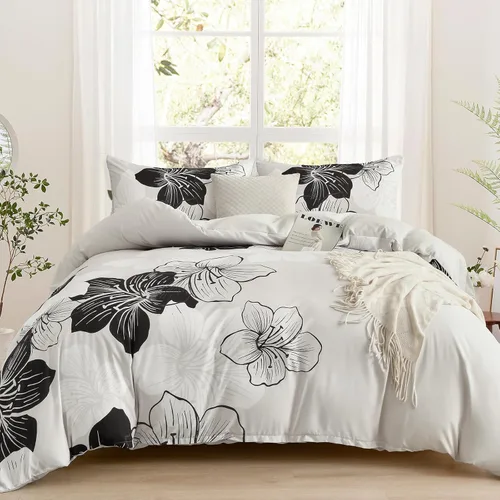 Material de alta calidad: el juego de funda de edredón blanco y negro con estampado de flores está hecho de microfibra suave. La tela suave con exquisito patrón floral, mejorará la decoración de tu dormitorio o habitación de invitados y disfrutarás de un sueño transpirable y ligero durante todo el año. Elegante y duradero: La combinación estable de gris con patrones de flores blancas y negras hace que la funda de edredón se vea más hermosa y moderna. Juego elegante de funda de edredón con estampado floral, una gran decoración de ropa de cama para tu dormitorio. Juego de funda de edredón (Queen): el juego de funda de edredón gris de 3 piezas con estampado floral bohemio negro y blanco incluye 1 funda de edredón con estampado floral (90 x 90 pulgadas) + 2 fundas de almohada (20 x 26 pulgadas). Costuras limpias y fuertes de la funda de edredón floral en blanco y negro no se rompen, se puede usar durante muchos años. Cierre de cremallera y lazos en las esquinas: la funda de edredón floral en negro y blanco con cierre oculto es duradera, no daña la piel. 4 lazos en las esquinas dentro de la funda de edredón, también se pueden utilizar para fijar el edredón, evitar que el edredón o la funda de edredón se deslicen. Fácil de cuidar: el juego de funda de edredón floral bohemio no se encoge fácilmente y se puede lavar a máquina o a mano en frío. La tela de alta calidad se sentirá más suave después de cada lavado, por favor, no usar blanqueador, solo un poco de detergente es suficiente.