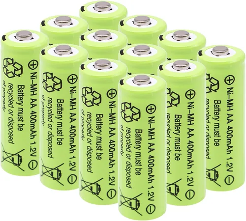 Tipo de batería: baterías recargables AA400mAh para interiores, la longitud es de 1.97 pulgadas y el ancho es de 0.55 pulgadas, confirma el tamaño de la batería antes de comprar y asegúrate de que tu dispositivo sea adecuado para baterías AA de 1.2 V. También puede reemplazar baterías AA de 100 mAh, 200 mAh, 300 mAh, etc. NiCd o Ni-MH AA Precargadas: para la seguridad del transporte, estas baterías solo están precargadas al 30%. No es un problema de calidad si obtienes baterías sin energía. Por lo tanto, carga completamente primero antes de usar Ahorro de dinero: las baterías AA recargables de hidruro de metal de níquel de 400 mAh se pueden recargar constantemente 1200 veces, ahorrándote dinero al comprar baterías alcalinas desechables de un solo uso. Ampliamente utilizadas: las baterías AA NI-MH de 1.2 V se pueden utilizar ampliamente para luces de batería, luces de paisaje, luces de césped, juguetes, controles remotos de TV, linternas, ratones inalámbricos, reproductores de audio portátiles, controladores de juegos, dispositivos domésticos inteligentes, cámaras digitales y otros dispositivos electrónicos cotidianos Baja autodescarga: con baja autodescarga, estas baterías mantienen el 75% de su capacidad inicial incluso después de 3 años de no uso. Recomendamos cargarlos completamente cada 3 meses para obtener los mejores resultados Respetuoso con el medio ambiente: el material de protección del medio ambiente Ni-MH reduce la contaminación de metales pesados. Las baterías de hidruro de metal de níquel doble A no contienen Hg/Cd/Pb. Son reciclados y ecológicos