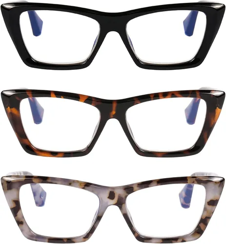 Tecnología avanzada de lentes de lectura de luz azul: cuentan con lentes de primera calidad que proporcionan una protección completa UV400 y filtran la luz azul dañina de las pantallas digitales. El tratamiento antirreflejos minimiza los reflejos para una visión más clara, lo que hace que estos lectores sean ideales para el trabajo de computadora, uso de teléfonos inteligentes, navegación en tabletas y juegos. Están diseñados para mejorar la claridad visual y la comodidad, proteger tus ojos y disfrutar de tu tiempo digital. Lentes de alta calidad: los lectores de bloqueo de luz azul DOOViC utilizan lentes premium de nueva generación. Resistente a los arañazos, de alta definición, restaura los colores reales y es duradero. Te trae una mejor visión. Ajuste cómodo: diseño moderno y ergonómico. Marco duradero y ligero de alta calidad con bisagra de resorte para más libertad de uso. Te permite tener una experiencia de uso cómoda. Diseño único: diseño italiano, hermosas líneas de ojo de gato. Una combinación perfecta de gafas de lectura clásicas y elegantes para mujer. Diferentes estilos para hacer frente fácilmente a diferentes estados de ánimo, vestimenta y ocasión. Te permite caminar a la vanguardia de la moda. Compra sin preocupaciones: 100% cliente primero. Si hay algún problema, no dudes en ponerte en contacto con nosotros, obtendrás una solución satisfactoria. No tienes ningún riesgo de intentarlo.