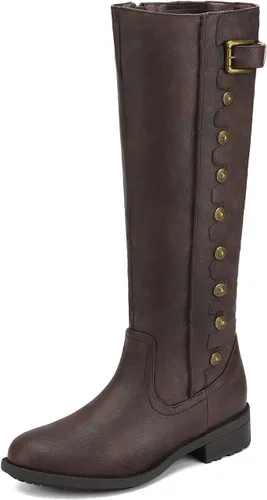 DREAM PAIRS - Botas altas hasta la rodilla de pantorrilla ancha para mujer, botas tipo equitación con tacón bajo apilado