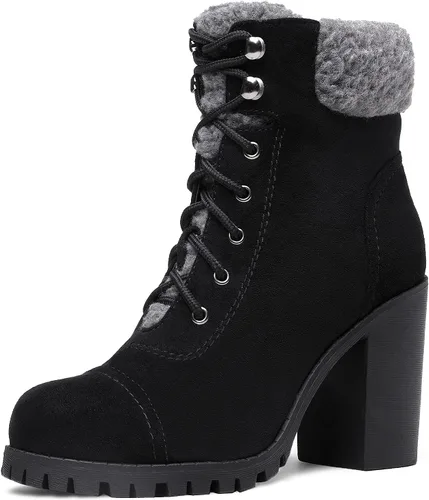 DREAM PAIRS Botas con cordones para mujer, tacón alto grueso, botines
