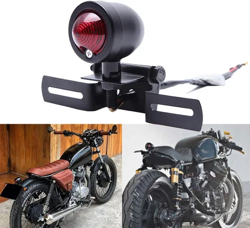 DREAMIZER Luz trasera de bala de motocicleta con soporte de matrícula soporte de aluminio retro lámpara trasera para Cafe Racer Bobber Custom