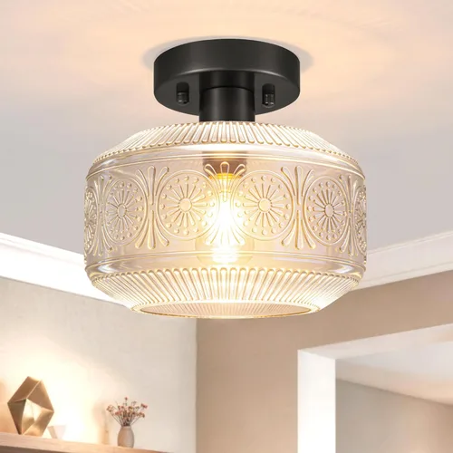 DSMJFU Lámpara de techo de montaje semiempotrado, lámpara de techo pequeña vintage, lámpara de iluminación de pasillo de vidrio engrosado, lámpara