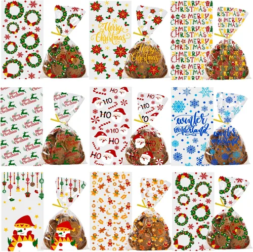 Paquete económico: recibirás 160 bolsas de celofán de Navidad en 8 estilos (20 piezas de cada estilo) y 160 lazos giratorios en 3 colores (rojo, verde, dorado), suficientes para satisfacer las necesidades de uso de tus fiestas y puedes compartirlas con amigos. Diseño de Navidad: las bolsas de regalo de Navidad tienen 8 diseños de Navidad, llenos de muchos patrones clásicos y lindos de elementos de Navidad, como Papá Noel, muñeco de nieve, copo de nieve, hombre de jengibre, corona de Navidad, bastón de caramelo, alce y mucho más. A los niños y adultos definitivamente les gustarán las bolsas de fiesta de Navidad. Tamaño adecuado: las bolsas de dulces de Navidad son de 4.92 x 10.62 pulgadas, fáciles de poner y sacar dulces y otros regalos, perfectas para Navidad y fiestas. Material de alta calidad: las bolsas de regalos de Navidad están hechas de material de polipropileno de calidad, inodoro y no tóxico, suave y ligero, no es fácil de romper. El lazo giratorio está hecho de poliéster y alambre de hierro, puede cerrar fácilmente las bolsas. Amplias aplicaciones: las bolsas de dulces de Navidad son perfectas para fiestas de Navidad, se pueden utilizar para empacar dulces, galletas, chocolates, aperitivos, juguetes y otras cosas. Las bolsas de celofán también se pueden utilizar en Año Nuevo, bodas, vacaciones y fiestas de cumpleaños. También es un regalo ideal para familiares y amigos