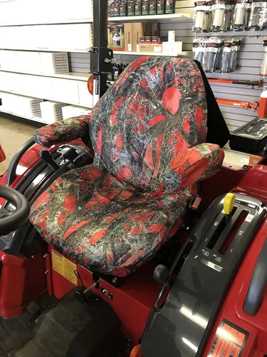 Se adapta a todos los modelos de tractores más nuevos de Mahindra con respaldo alto, reposabrazos plegables, orificios de drenaje y pliegues de asiento hacia adelante, todos los detalles importan. Asiento moldeado de una pieza con marco de plástico y orificio de drenaje. Solo se ajusta al asiento descrito, no hay estiramiento en la tela. Fundas para reposabrazos incluidas Si su asiento no tiene reposabrazos y no se pliega hacia adelante, esta funda no encajará. Hay una pestaña de velcro que atraviesa el orificio de drenaje y se ancla en la parte posterior. La funda es de camuflaje impermeable o Endura sólida para eliminar el calor de ese asiento de vinilo negro. Haz que tu asiento dure tanto como tu tractor Lavable a máquina, instalación rápida para facilitar su uso. No apto para asiento de suspensión en modelos Mahindra más grandes