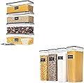 Perfecto para la organización de la despensa: este juego de recipientes incluye 4 recipientes herméticos (3.8 cuartos de galón), que son perfectos para almacenar harina, azúcar y suministros para hornear, también es ideal para almacenar avena, pasta, arroz, café, té, aperitivos, nueces e incluso una caja de cereales. Este juego viene en una hermosa caja que lo convierte en un regalo ideal para cualquier amigo o familia. Diseño apilable y que ahorra espacio: estos contenedores duraderos han sido especialmente diseñados para minimizar el espacio, son apilables por lo que estos contenedores de almacenamiento de plástico harán un uso más eficiente de cada pulgada del congelador o armario de tu cocina en casa. que le permite organizar la cocina y liberar espacio en la despensa. Sellado hermético y mantiene los alimentos frescos: las tapas de bloqueo lateral con sello de silicona negra garantizan que no entre aire o agua, manteniendo siempre tus aperitivos favoritos súper frescos y secos. Estos recipientes transparentes también son fáciles de limpiar, aptos para lavavajillas, extremadamente fáciles de usar y listos para usar. 8 etiquetas reutilizables: Estas etiquetas te ayudarán a nunca confundir la harina con el azúcar en polvo o el polvo de hornear con bicarbonato de sodio. Son reutilizables, puedes cambiar el contenido cuando lo necesites, viene también con un marcador para que esté listo para ponerlo en uso. Alta calidad: hecho de plástico de grado alimenticio de alta calidad, libre de BPA, no contiene sustancias nocivas, es lo suficientemente resistente para un uso duradero, fácil de almacenar cuando no está en uso colocando una en la otra.