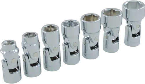Contiene: 3/8", 7/16", 1/2", 9/16", 5/8", 11/16", 3/4" Articulación de 360 grados para acceder a sujetadores en espacios reducidos Acabado cromado para una máxima resistencia contra la corrosión Diseño de enchufe de 6 puntos Garantía de por vida
