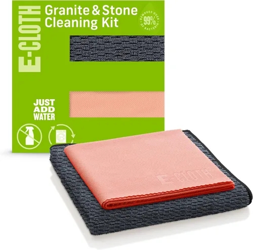 microfibra El kit de limpieza de granito y piedra de E-Cloth es todo lo que necesitas para proteger tu inversión en el hogar, eliminar la grasa, la suciedad y más del 99% de las bacterias del granito, mármol, esmalte y todas las superficies de piedra, y luego pulirlas de nuevo como nuevas. Mantiene las superficies preciadas en perfectas condiciones sin opacar su acabado, con solo agua El paño de limpieza texturizado agarra el polvo, los desechos y las bacterias de las superficies más lisas y no lo deja ir hasta que lo enjuagues. Sigue con el paño de pulido para absorber la humedad, manchas de agua, huellas dactilares y más, dejando un brillo satisfactorio con solo unos pocos pasos Para superficies de alto contacto que necesitan limpieza constante, es bueno saber que puede mantenerse alejado de limpiadores adicionales y tirar sus herramientas de limpieza en la ropa en lugar de un vertedero. Al igual que usted, preferimos usar masas de microfibras diseñadas con precisión más el poder de limpieza del agua Con calidad hecha para durar respaldada por nuestra promesa de 1 año o 100 lavados, es posible que nunca vuelvas a poner toallas de papel o costosos limpiadores especiales en tu carrito de compras Domina la limpieza de granito y mármol con microfibra diseñada con precisión y agua que cambia el juego