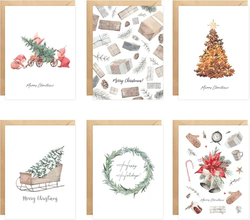 easykart labels Surtido de 24 tarjetas de Navidad con sobres y calcomanías de sellado, 6 diseños de temática bohemia navideña, 5.75 x 4.25 pulgadas