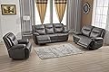 Betsy Furniture Juego de sofá reclinable de cuero regenerado para sala de estar 8006 (gris, sofá+sofá biplaza+sillón reclinable)