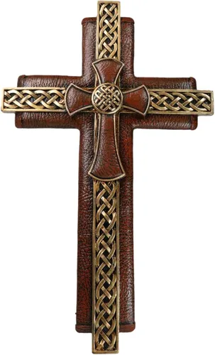 ¿Para qué sirve Ebros Gift Placa decorativa de piel sintética con nudo celta occidental rústico, multicapa, 12 pulgadas de alto, diseño de cruz de pared?