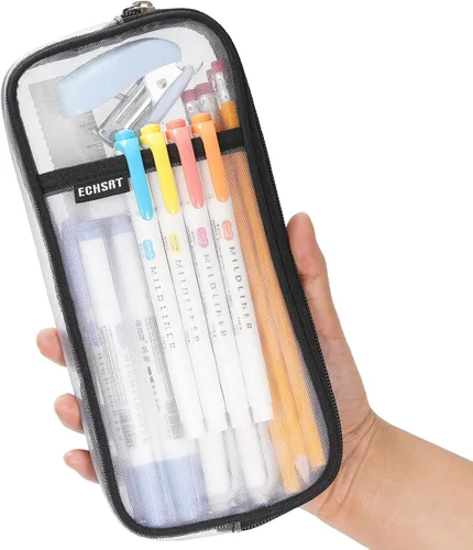 ECHSRT Estuche para lápices de malla resistente al agua con cremallera, estuche de rejilla transparente para la escuela, la oficina y los viajes, 2