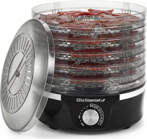 Pregunta sugerida sobre Elite Gourmet EFD319 Deshidratador de alimentos, controles de temperatura ajustables, aperitivos de frutas, verduras, carne, sin bisfenol A, 5 Negro ¿Qué incluye exactamente este set?