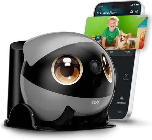 Robot móvil con cámara 3K: controla remotamente EBO para explorar tu hogar con facilidad. Las ruedas con seguimiento proporcionan una navegación suave, mientras que la cámara para mascotas de 3K ofrece vistas nítidas de día y de noche. Perfecto para revisar a las mascotas o a la familia cuando no estás en casa CHARLA DE VIDEO BIDIRECCION: ¡FaceTime a través de los ojos de EBO! Simplemente presiona el botón superior para iniciar videollamadas en vivo. Observa las reacciones de tu familia y chatea en tiempo real, como si estuvieras allí juntos Modo de chat AI integrado: toca el botón superior de EBO para comenzar a chatear Obtén respuestas instantáneas, narración de historias o simplemente charlas casuales, impulsadas por ChatGPT y DeepSeek para conversaciones fluidas Carga automática y batería de larga duración: EBO utiliza escaneo infrarrojo para acoplarse automáticamente cuando la batería se agota. La batería de 5000 mAh mantiene este robot de cámara para mascotas funcionando por más tiempo entre cargas HACED DE EBO ALGO ÚNICO: ¡Personaliza la cara de EBO! Sube fotos a sus pantallas de ojos o elige entre 3 estilos de ojos. Muestra el aspecto único de tu robot cámara para mascotas EBO en segundos LO QUE HAY EN LA CAJA: EBO Air 2 Plus (Gris), base de carga, cargador, tarjeta micro-SD de 32GB (pre-instalada en EBO Air 2 Plus), manual de usuario