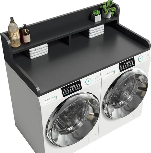 【Barandillas de protección de 2.75" de alto】El mostrador de lavadora y secadora Corbyles tiene barandillas de protección de 2.75" de alto en ambos lados y en la parte posterior para evitar que los artículos se caigan. Los bordes redondeados suaves reducen las esquinas afiladas para un uso diario más seguro. 【Espacio de trabajo más grande】Con medidas de 54"A x 27.55"P x 12"A, nuestro accesorio superior de lavandería proporciona una superficie lisa y espaciosa para doblar, clasificar y organizar la ropa. El segundo estante almacena de manera ordenada los detergentes y suministros de lavandería, manteniendo tu cuarto de lavado práctico y organizado. 【Madera de ingeniería resistente】El mostrador de lavadora y secadora está elaborado con madera de ingeniería de grado P2 de 1.5 cm de grosor y pesa 18.6 kg (41 libras). Durable y fácil de limpiar, se ajusta perfectamente a tu espacio de lavandería mientras añade un toque de encanto natural y elegante. 【Almohadillas Antideslizantes para Mayor Estabilidad】Esta cubierta superior para lavadora y secadora tiene almohadillas antideslizantes de silicona que reducen la vibración durante el funcionamiento, manteniendo los artículos estables y evitando que se vuelquen o se deslicen, incluso mientras funcionan tus máquinas. 【Fácil de instalar】Este tope de lavandería es simple de instalar con las instrucciones paso a paso incluidas. Se adapta a la mayoría de lavadoras y secadoras de carga frontal estándar. Por favor, verifica cuidadosamente las dimensiones, especialmente el espacio libre sobre tu lavadora y secadora, antes de hacer el pedido. 【Nota】Tomamos todas las precauciones para evitar daños, pero pueden producirse pequeños golpes durante el envío. Si tienes alguna duda, ponte en contacto con nosotros a través de tu historial de pedidos y te ayudaremos rápidamente.