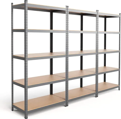 • Estructura de metal resistente: con metal recubierto y tableros de MDF gruesos, los estantes de almacenamiento son duraderos y resistentes al óxido con una gran capacidad de hasta 584 libras por capa. Estantes ajustables: la altura de cada nivel es ajustable según lo requiera tu almacenamiento. Una unidad de estante de almacenamiento se puede montar de forma flexible como un solo estante de 5 niveles o dos estantes más cortos independientes. Gran capacidad: las dimensiones de esta estantería de garaje son de 108 pulgadas de ancho x 18 pulgadas de profundidad x 72 pulgadas de alto con un total de 3 x 2920 libras de capacidad de carga que te ayuda a ahorrar espacio y mantener un montón de herramientas desordenadas, comestibles y otras cosas organizadas. Fácil de montar: con un diseño entrelazado humanizado sin tornillos, estos estantes se pueden terminar de instalar en un cuarto mientras garantizan resistencia y estabilidad. No es necesario atornillar muchos pernos. Almacenamiento multiusos: este estante simple pero práctico es perfecto para uso doméstico o comercial como garaje, sala de herramientas, almacén, despensa, oficina, exposición, supermercado, etc.