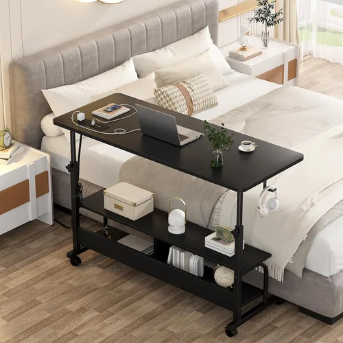 Escritorio de pie con tomas de corriente: ¿tienes problemas para encontrar tomas de corriente cuando utilizas equipos electrónicos para el trabajo o el entretenimiento? El escritorio de pie ajustable armocity viene con 2 salidas de CA y 3 puertos USB, cable de fuente de alimentación de 6.5 pies de largo que puede permitirte conectar fácilmente teléfonos, computadoras portátiles, AirPods, etc. Viene con cinta de velcro para organizar los cables de tu dispositivo. Altura ajustable y amplia aplicación: nuestro escritorio portátil ajustable se puede ajustar de altura de 27.5 a 41 pulgadas para satisfacer tus necesidades de altura de escritorio, protegerte del dolor de cabeza y dolor de cuello. El escritorio móvil de pie con diseño en forma de C es conveniente para trabajar, comer, sostener platos, aperitivos, café, revistas, adecuado para sala de estar, dormitorio, estudio, espacio pequeño, especialmente al lado de cualquier sofá y cama. Multifunción: el escritorio rodante para computadora está equipado con 4 ruedas giratorias suaves de alta calidad y almohadillas antideslizantes, puedes mover el escritorio donde quieras o fijarlo en un solo lugar, ofrece un movimiento estable y una experiencia de trabajo fantástica. Los estantes de almacenamiento de apertura de 2 niveles son convenientes para colocar las necesidades diarias y otros artículos. Dos ganchos adicionales de hierro de escritorio pueden ahorrar la mayor parte de tu espacio. Fácil de montar: no requiere habilidades profesionales de montaje de muebles. Viene con instrucciones detalladas comprensibles y piezas etiquetadas, todos los accesorios y herramientas, ayuda a una persona a completar la mesa de computadora portátil de altura ajustable sin tomar mucho tiempo. Resistente y duradero: hecho de metal de alta calidad y tablero de MDF ambiental de 0.59 pulgadas de grosor, tiene una alta capacidad de peso y mantiene la estabilización, lo que puede mantener la estabilidad mientras lo utilizas. La superficie es lisa, impermeable y fácil de limpiar. El escritorio de 47 pulgadas de largo x 15.7 pulgadas de ancho proporciona más espacio de trabajo.