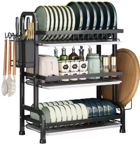 🧺 3 niveles amplios y resistentes para platos, ollas, botellas y utensilios.