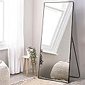 NeuType Espejo de longitud completa, 64 x 21 pulgadas, marco de aleación de aluminio, espejo de suelo con soporte, espejo grande para dormitorio, de
