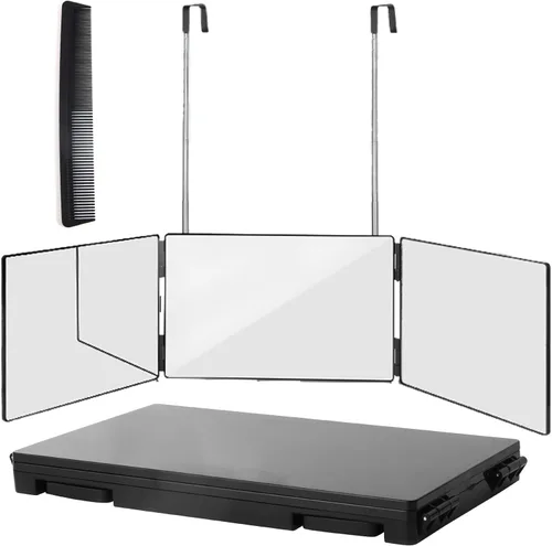 Wentoma Espejo de visión de 360° para cortar y peinar el cabello, espejo de altura ajustable para aseo, maquillaje y afeitado, vidrio HD Negro