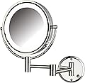 JERDON Espejo de maquillaje montado en la pared con luces - Espejo de maquillaje iluminado con cable directo con aumento 8X y acabado cromado -