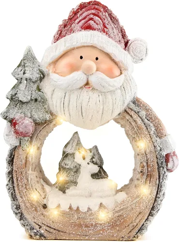 Decoraciones de Papá Noel: Tamaño perfecto del artículo 6.7 "x3.1"x9.6" y peso 1.9 libras. La estatua de Papá Noel está hecha de material de resina, no es demasiado pesada y resistente. El Papá Noel viste un sombrero de Navidad, guantes rojos, sostiene un árbol de Navidad y difunde un ambiente festivo en tu lugar. Decoración navideña: la figura de Papá Noel requiere 2 pilas AAA para operar luces LED alrededor del cuerpo (batería no incluida). Hay un temporizador de 6H dentro del chip, pon el interruptor en "on" y se encenderá durante 6 horas y se apagará automáticamente durante 18 horas. Ciclo cada 24 horas y muy cómodo de usar. Decoración navideña: La estatua de Santa puede exhibirse en la estantería, repisa, mesa, repisa de la chimenea, comedor, alféizar de la ventana, sala de estar, oficina, centro de mesa y cualquier lugar que desee. Es ideal para la inauguración de la casa y traerá muchos elogios de sus familias y visitantes. Decoraciones navideñas: La figura de Papá Noel es un regalo encantador para sus familias y amigos, está disponible para Navidad, Año Nuevo, celebraciones de invierno y es una gran adición a sus decoraciones navideñas. Experiencia del cliente: Cada estatua de Papá Noel está bien empacada para asegurar un viaje seguro hasta el destino. La purpurina en la superficie puede caer ligeramente, es normal y no afectará el uso ni la apariencia.