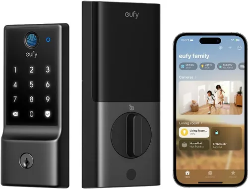 Soporte para el hogar de Apple: el Smart Lock E30 de eufy está diseñado para funcionar directamente con tu hub existente, ofreciendo una integración perfecta con Apple Home, Google Home, Alexa y SmartThings. Esto permite múltiples opciones de desbloqueo y una fácil integración con una gama de dispositivos domésticos inteligentes para la automatización. Desbloquea para las necesidades de toda la familia: desbloquea en menos de 0,3 segundos con la huella digital, el control de la aplicación, el teclado, la tecla física o los comandos de voz a través de Siri, Alexa o Google Assistant. Experimenta un proceso de desbloqueo ultrarrápido y sin esfuerzo que mejora continuamente su reconocimiento de huellas dactilares con cada uso, asegurando una entrada rápida y sin complicaciones para todos los miembros de la familia. Hasta 8 meses de duración de la batería: alimentado por 8 pilas AA, el bloqueo inteligente eufy suele durar hasta 8 meses, dependiendo de la frecuencia de uso (*basado en 10 desbloqueos por día). Reciba alertas de batería baja con un 20% de carga, con el modo de ahorro de energía que dura hasta un mes más. Control remoto a través de Homepod u otros Hubs: controla fácilmente tu Smart Lock de forma remota con Apple Home u otras aplicaciones. Las características incluyen una configuración simple, administración de acceso, notificaciones en tiempo real, registros de eventos y desbloqueo remoto. Nota: Para obtener más detalles, consulte las secciones de preguntas y respuestas y contexto enriquecido. Fácil instalación y excelente servicio al cliente: Compatible con puertas estándar en los Estados Unidos y Canadá, nuestra cerradura inteligente ofrece una instalación fácil de 15 minutos sin taladrar. Disfruta de la tranquilidad con 18 meses de protección electrónica sin preocupaciones y 36 meses de cobertura mecánica, respaldado por nuestro confiable servicio posventa y atención al cliente profesional 24/7. Nuestro embalaje de productos se está actualizando actualmente. Puede recibir el embalaje antiguo o nuevo. Consulta el embalaje real que recibes.