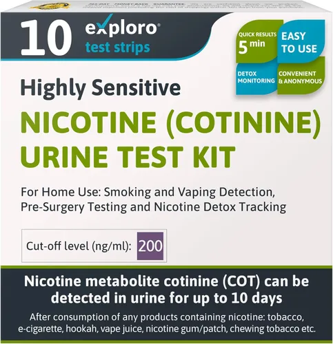 Exploro Kit de prueba de nicotina en casa, prueba de orina de cotinina, tiras de prueba de nicotina altamente sensibles para orina, prueba de