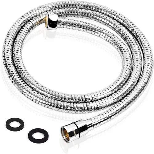 Longitud ideal: con opciones que van desde 49 a 79 pulgadas y extensión adicional de 10 pulgadas, la manguera de ducha de acero inoxidable RONVIE 304 proporciona la longitud perfecta para tus necesidades de ducha. Flexible y sin torceduras: no importa cómo gires y gires, la manguera de ducha larga es giratoria. Adopta un diseño doble entrelazado, esta manguera de extensión de ducha ofrece flexibilidad sin torceduras. Duradero y duradero: construido con resistencia a alta presión, nuestra manguera de ducha es a prueba de explosiones y a prueba de corrosión, y el tubo interior está hecho de material EPDM de calidad superior, resistente a altas temperaturas, por lo que es ideal para uso a largo plazo. Aplicaciones versátiles: la longitud correcta le permite lavar fácilmente el cabello, bañar bebés, enjuagar perros y más. La manguera de ducha RONVIE se puede utilizar muy fácilmente con el cabezal de ducha, desviador, soporte de ducha, brazo de ducha, etc. Fácil de instalar y usar: compatible con conexiones estándar G1/2" y equipado con una arandela impermeable, nuestra manguera es fácil de instalar y operar. Si tienes alguna pregunta, no dudes en ponerte en contacto con nosotros.