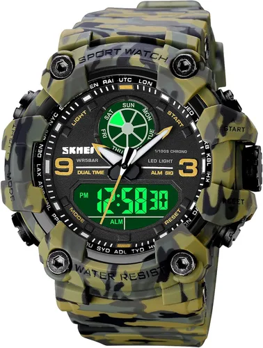diámetro de la esfera del reloj: 2.008 in Grosor de la esfera del reloj: 0.630 in Ancho de la correa: 0.866 in Longitud de la correa: 10.433 in Longitud de uso: 6.693-8.858 in Correa ajustable: hebilla peso del reloj: 2.82 oz Cantidad: una pieza Material: Espejo de reloj: resina Lucency Correa de reloj: plástico pu. Movimiento del reloj: movimiento original del cuarzo del puntero de la importación de la instalación de Japón Esfera del reloj: plástico ABS. Cierre de reloj: acero inoxidable. Botón del reloj: acero inoxidable. Batería del reloj: batería de litio Función: resistente al agua 50 M Antimagnético. Anti-vibración Alarma Cronómetro Tiempo dual Fecha, semana y calendario Luz nocturna LED multicolor