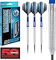 - Designed with high quality, 80% tungsten and 20% nickel barrels which offer exceptional balance and styling in a slim profile Each barrel has strategically placed knurled bands, deep grooves and rings that make excellent gripping points and encourages consistent hand placement Diamond-cut aluminum shafts feature locking holes which allow for a tighter fitting that improves stability and greatly reduces the need to retighten during play Includes an additional set of convex nylon shafts, flights, flight protectors and a dart mechanic wrench