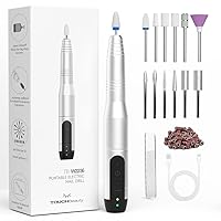 [Smart LED Display] - This professional electric nail drill machine is equipped with a smart LED screen that can display clearly the current revolutions number of the machine. Electric nail file is ideal for both professionals salon and beginners. [Professional Nail Drill Kit] - Nail kit set professional acrylic with everything including efile nail drill, smart led screen, 7pcs different kinds of bits, 26pcs sanding bands. Professional nail kit meets all your need for manicure and pedicure, such as shaping, trimming, grinding, carving, cutting, polishing for both acrylic nails and natural nails, and cuticle removal. [Low Noise & Low Vibration] - This nail files for natural acrylic nails features an upgraded carbon brusher motor and strong bearing, ensuring it spins smoothly with low noise, and low vibration even at the high speed. The body of this e file for nails is made with high-quality aluminum alloy, which contributes to heat dissipation. [20 Adjustable Speed] - Nail file designed with 20 adjustable speeds(up to 20000 rpm) enables you to work on different nail features effectively. The acrylic nail kit is suitable for left-handed and right-handed nail technicians enabling the user to change the direction of the nail drill rotation by switching the F/R button. [Compact Size] - Compact and lightweight design making portable nail drill convenient to carry. Just connect the cord to any USB device to do your nail artwork anywhere. This powerful and versatile nail filer electric is an ideal gift for the one who matters.