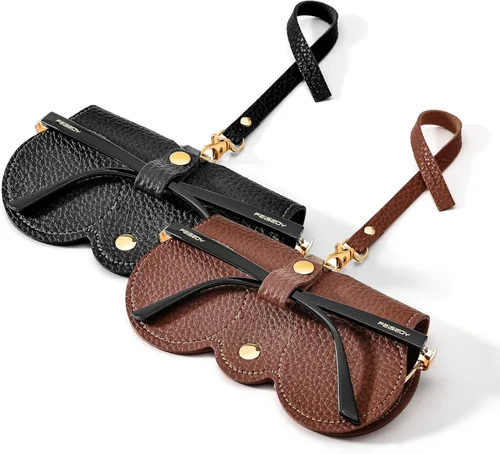 FEISEDY Paquete de 2 bolsas de cuero suave para gafas de sol, estuche para gafas, bolsa portátil para gafas con clip de botón correa de muñeca B0049