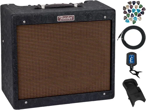 ALTAVOZ CREAMBACK CELESTION G12M-65: El amplificador Fender Blues Junior IV 30th Anniversary cuenta con un altavoz Creamback Celestion G12M-65 que ofrece una limpieza cálida y detallada y un rico gruñido de rango medio cuando se conduce Circuito de preámbulo modificado: ofrece una mayor riqueza tonal y capacidad de respuesta, proporcionando una experiencia de juego más dinámica en entornos limpios y sobreimpulsados REVERSIÓN DE PRIMAVERA MÁS SUAVE: El diseño de reverberación mejorado ofrece un ambiente más refinado y exuberante que combina perfectamente con el tono general del amplificador Diseño conmemorativo: la cubierta Black Western y la tela vintage de rejilla Bassman le dan a este modelo una estética distintiva y digna de coleccionista con encanto clásico de Fender Todo en una caja: Austin Bazaar aprecia tu compra añadiendo accesorios esenciales, este paquete contiene una base de guitarra para apoyar de forma segura tu guitarra cuando no está en uso, un afinador para mantener tu instrumento afinado, un cable de instrumento para una conectividad confiable y un exclusivo paquete de 24 selecciones de Austin Bazaar para uso futuro
