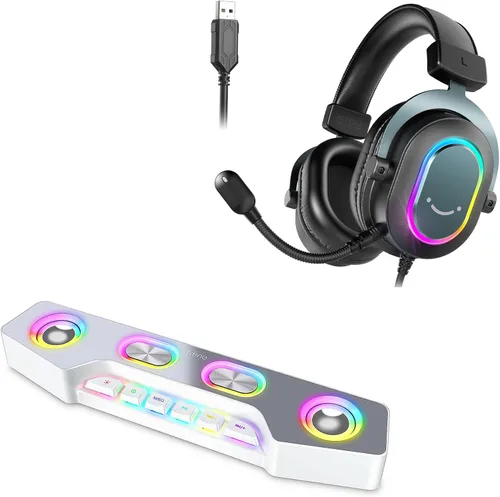 {Sonido claramente vibrante} Diseñado para transmisores de jugadores, con controladores de altavoces bien construidos y diafragmas bien hechos, el altavoz Bluetooth inalámbrico para juegos ofrece un audio de graves agudos más brillante, más penetrante y detallado. Parece que los miembros de todo el equipo están jugando lado a lado en la habitación. Los potentes sonidos dinámicos entregados por el altavoz portátil te ponen personalmente en la intensa escena de transmisión de juegos. {Iluminación RGB} Hay un total de 4 modos RGB en el altavoz de PC para escritorio. Puedes elegir colores relajantes para juegos casuales, luces coloridas geniales para FPS o modo de música para disfrutar de fiestas audiovisuales. La iluminación multicolor en el altavoz RGB embellece tu escena de accesorios de juego. Disfrutará del espectáculo de luces LED mientras obtendrá una experiencia de música de juego de alto nivel brindada por los altavoces para juegos para PC. Diseño delicado: diseño de pulido de espejo adoptado y botones de teclado mecánicos, el altavoz inalámbrico de computadora para PC combina decencia elegante, practicidad simple y estructura compacta sólida. No es necesario desbloquear el teléfono u operar la computadora, puede realizar el altavoz de computadora Bluetooth a través de teclas de función intuitivas en sí mismo. El altavoz para juegos de PC garantiza que tu fiesta musical no se interrumpa. [Sonido inmersivo] Gracias al sonido envolvente virtual 7.1 de los auriculares para juegos de PC, tienes la ventaja de los jugadores del juego. Jugando que fue capaz de escuchar pasos o disparos para reaccionar temprano, e incluso saber que sus oponentes están caminando en tierra o agua. Los auriculares PS4 te ofrecen una audición de sonido de graves espaciales. Los auriculares con cable se sumergen en el mundo del juego. [Control en línea] Tres modos de ecualización te dan presencia en diferentes escenas. Al ponerte los auriculares Fifine AmpliGame, puedes experimentar un sonido fenomenal para juegos, escuchar vívidamente conciertos de música o un lado inmersivo para ver películas ocasionalmente. Controlador de botón de volumen y micrófono silencio rápido con icono en el auricular de la PC, no se perdería al ajustar el chat o el audio del juego.