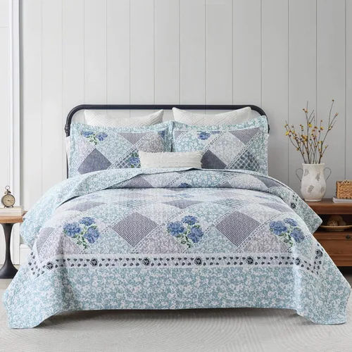 Colcha de algodón: colcha extra King de gran tamaño, la colcha acolchada floral está hecha de 100% algodón, más saludable y más transpirable. Suavidad, agradable al tacto y duradero. Colcha de retazos floral: colcha de retazos auténtica, diseño único de patrón floral y excelente artesanía de doble costura, combina bien con tu lujoso dormitorio, sala de estar, manta, airbnb y decoración de dormitorio. Las colchas de tamaño King son la mejor opción de regalo para tus padres y amigos. Juego de colcha de 3 piezas: 1 colcha King de gran tamaño (128 x 120 pulgadas) + 2 fundas de almohada (20 x 36 pulgadas), extragrande, cuelga bien sobre los bordes de tu cama tamaño King. 【Colcha reversible decorativa】- Colcha king de gran tamaño de estilo rústico con colores azul y morado, colcha reversible de gran tamaño, cambia el aspecto de tu dormitorio en un instante y lo suficientemente fresca para las temperaturas más cálidas. Colcha de fácil cuidado: lavar a máquina por separado en agua fría con detergente suave. Secar en secadora a baja temperatura para garantizar la longevidad de la tela de algodón suave y colorida. Certificado de seguridad - Este cubrecama extragrande tiene la certificación Standard 100 de OEKO-TEX, lo que garantiza que ha sido probado y verificado para estar libre de sustancias nocivas.