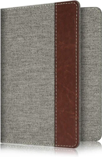 Fintie - Funda para tarjetas y pasaporte, de piel sintética, bloqueo RFID, cartera de viajes (mezclilla gris)