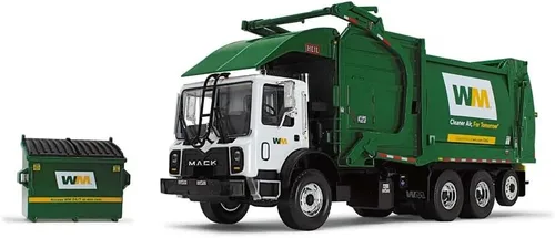 First Gear 10-4006D - Camión de basura Mack TerraPro con cargador frontal Heil Half/Pack Freedom y portón trasero de GNC, color blanco y verde, con
