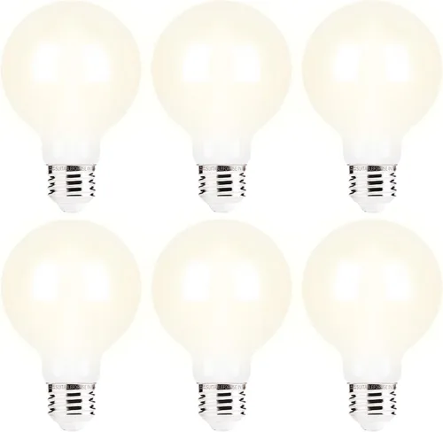 FLSNT Bombilla de tocador de 2700 K, blanco suave, paquete de 6 bombillas LED G25 Edison para iluminación de espejo de baño, CRI90+ regulable,