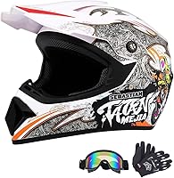 Casco de motocross para ATV y moto de tierra, casco todoterreno con guantes y gafas para unisex, adulto y juvenil, aprobado por DOT/FMVSS 218 Blanco