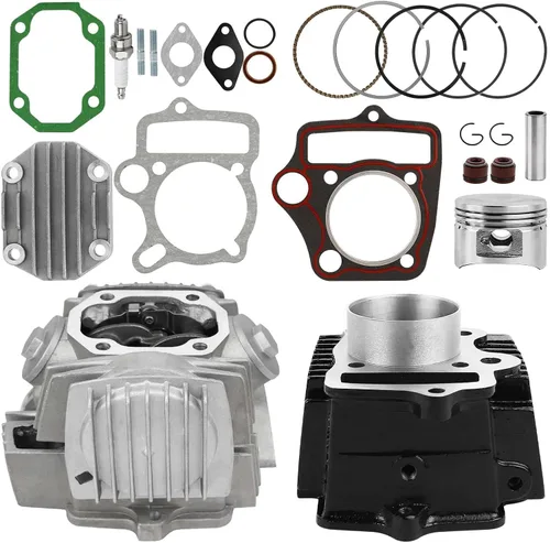 Tamaño de la culata: Válvula de admisión: 23mm/0.91", válvula de escape: 20mm/0.79", longitud de la válvula: 66mm/2.6", piñón de accionamiento de distribución: 28 dientes. Tamaño del cilindro: Orificio: 52.4 mm, diámetro del pistón: 52 mm, altura del pistón: 37 mm. Se adapta a la mayoría de motores chinos de 110 cc, como ATV, moto de cross, pit bike, go kart, moto de bolsillo. Nota: No es compatible con motor de cilindro Lifan 110cc de 52.4mm. No es apto para un pequeño número de modelos Xiamen Airlines AirAsia de 110 cc. No apto para Polaris 2016. No es compatible con motores TaoTao de 110cc (Este recipiente mide 69 mm de longitud desde la superficie de la junta hasta la superficie opuesta.) Algunas vasijas de TaoTao son aproximadamente 10 mm más largas que otras porque el recorrido es más largo. Contenido del paquete: 1 juego de culata con kit de reconstrucción de pistón de cilindro. Mide la longitud de tu cilindro original antes de comprar.